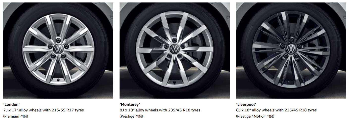 휠은 총 3가지로 분류 됩니다. 단 적용 가능한 트림이 있으니 확인 하시기 바랍니다.