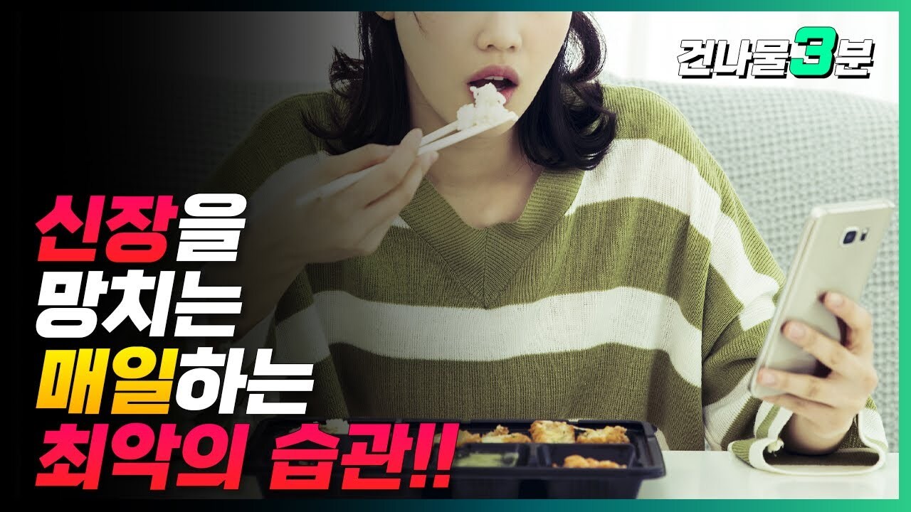 일상 속 신장을 망치는 생활슨괍들 알아봅니다. 건강한 신장도 최악의 4가지 습관을 지속적으로 한다면 망가져 버립니다. 절대 습관이 되지 말아야 할 건강한 신장을 망치는 최악의 4가지 습관 '이것' 아래 영상에세 확인 하세요!