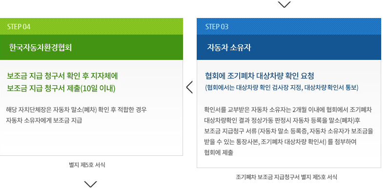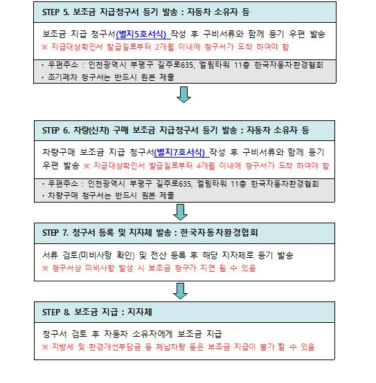 차량을 폐차하게끔 권장했으니 차량을 살 수 밖에 없습니다. 차량은 워낙 고가이기 때문에 이에 따른 정책으로 하단의 조건에 맞는 신규로 등록한 차량의 소유자가 지급대상확인서 발급 후 4개월 이내에 차량 구매 보즈금 지급청구서를 제출 하면 추가로 보조금을 지원 받을 수 있습니다.