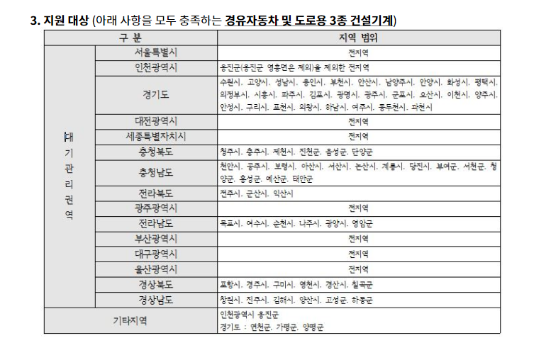 위의 이미지처럼 절차에 따라 진행을 해주시면 됩니다. 하단에 지원대상이 되는 대기관리권역을 안내 드리겠습니다.