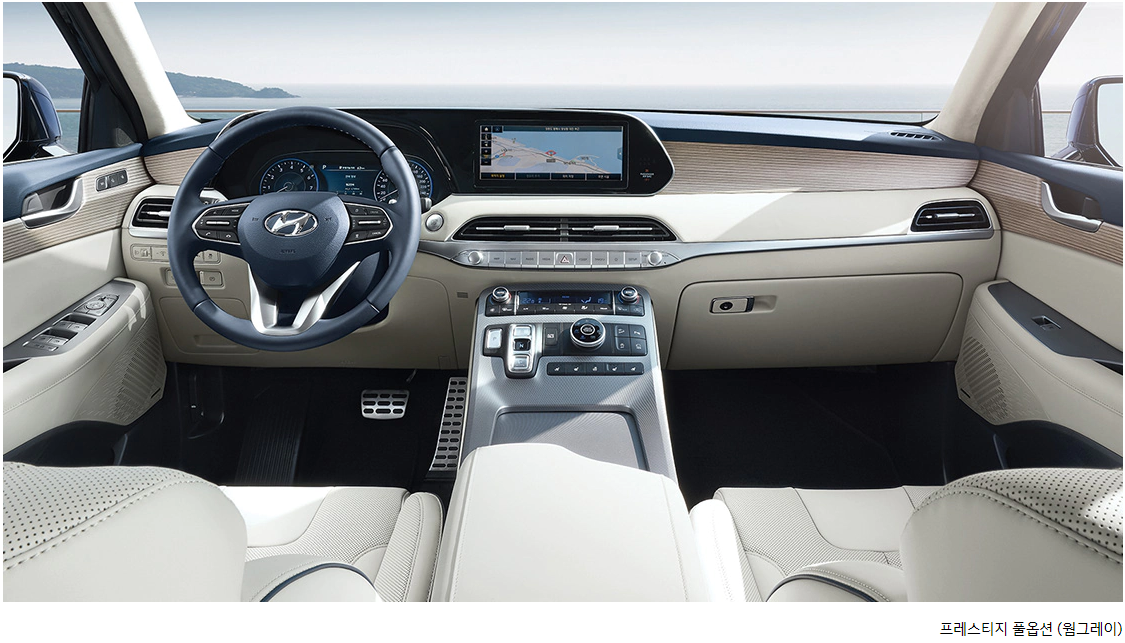 개인적인 의견으로는 외관에 더 비중을 많이 두는 편이기에 프레스티지에 더 마음이 갑니다. 외관 옵션으로 Full LED 헤드램프, 20인치 알로이 휠과 타이어는 팰리세이드를 더 돋보이게 해줍니다.