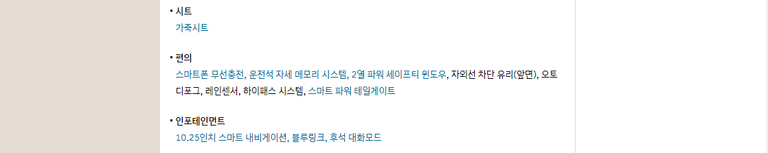 그외에도 스마트폰 무선충전과 운전석 자세 메모리 시스템, 2열 파워 세이프티 윈도우 등이 있습니다.