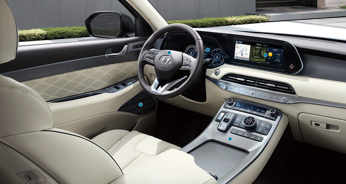 편의 시설으로는 버튼시동&스마트키 두가지 사용이 가능 합니다. 다음은 전동식 파킹 브레이크, 3존 독립제어 풀오토 에어컨 기능이라고 하여 미세먼지가 심한 요즘을 겨냥하면서 패밀라카의 자녀들을 신경쓴 공기청정모드, 클러스터 이오나저가 포함이 되었는 것이 특징입니다.