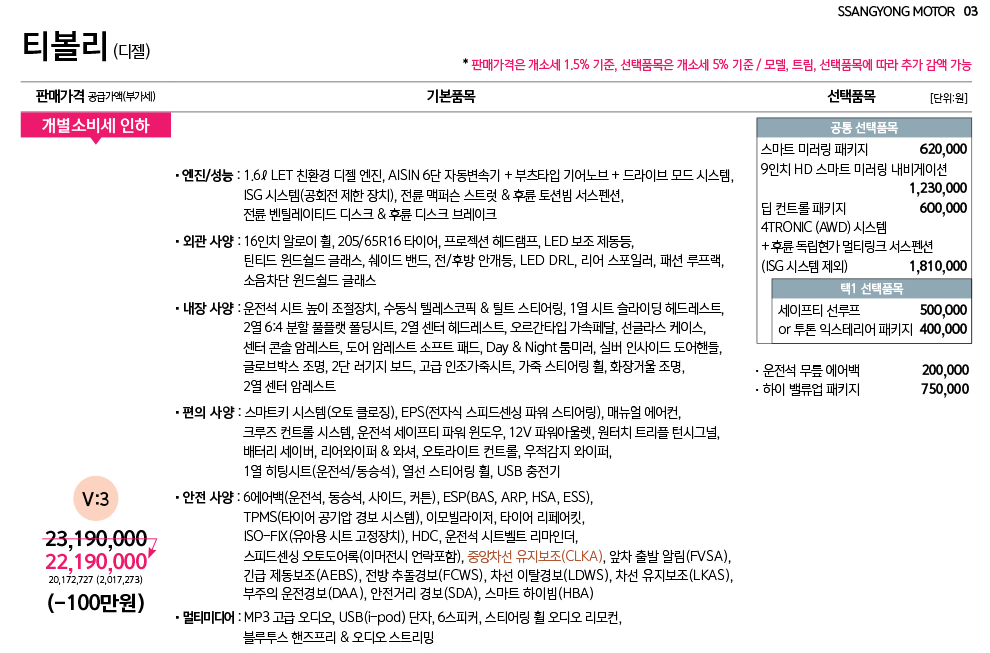 티볼리 디젤 등급별 가격표