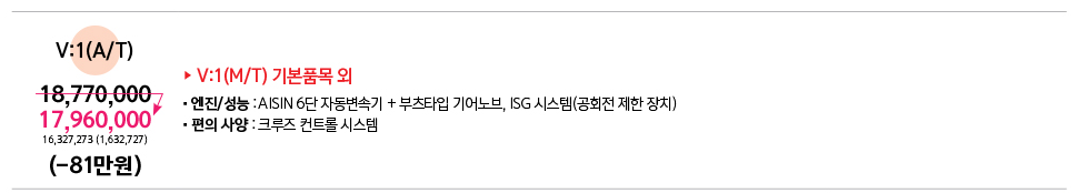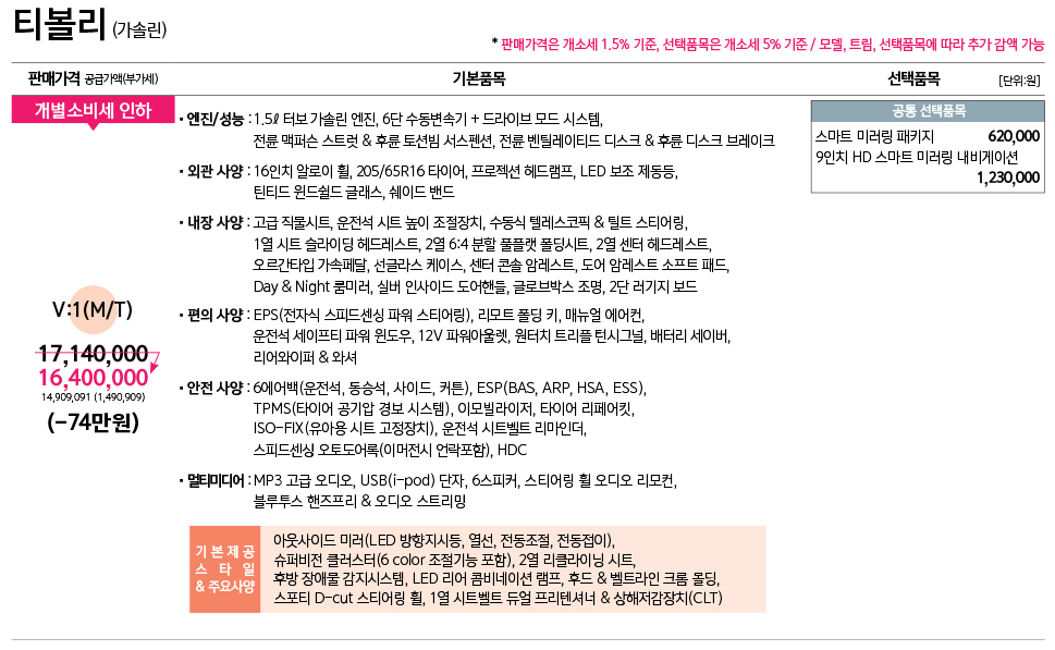 티볼리 가솔린 가격표 : V:1 ,3 시리즈