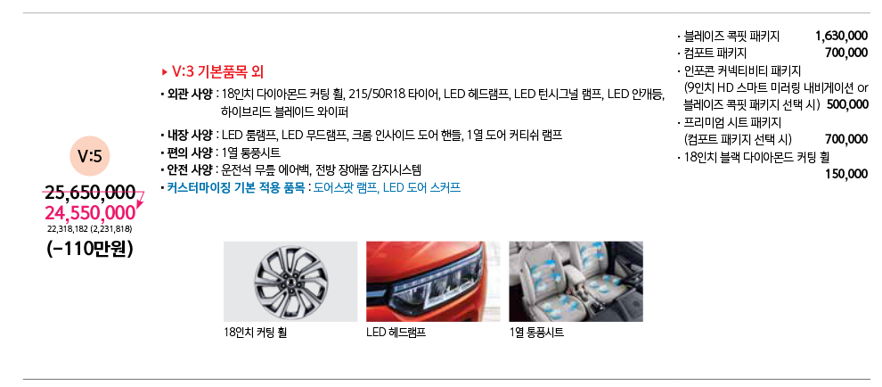 하단은 가장 많이 구매하시는 스페셜 가격표 입니다. 개별소비세 인하 등 다양한 혜택과 옵션이 많아서 많이 선택하는 등급입니다. 참고하시기 바랍니다.