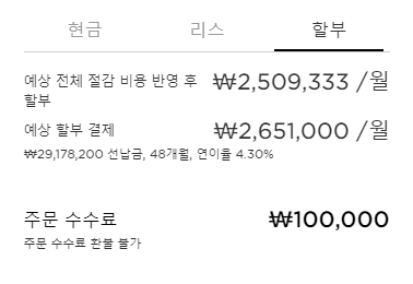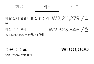 최종 현금/리시/할부 가격을 알아보도록 하겠습니다.