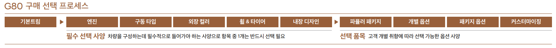 다음은 제네시스 구매 프로그램 중 필수 선택 사양에 대해서 알아보도록 하겠습니다.