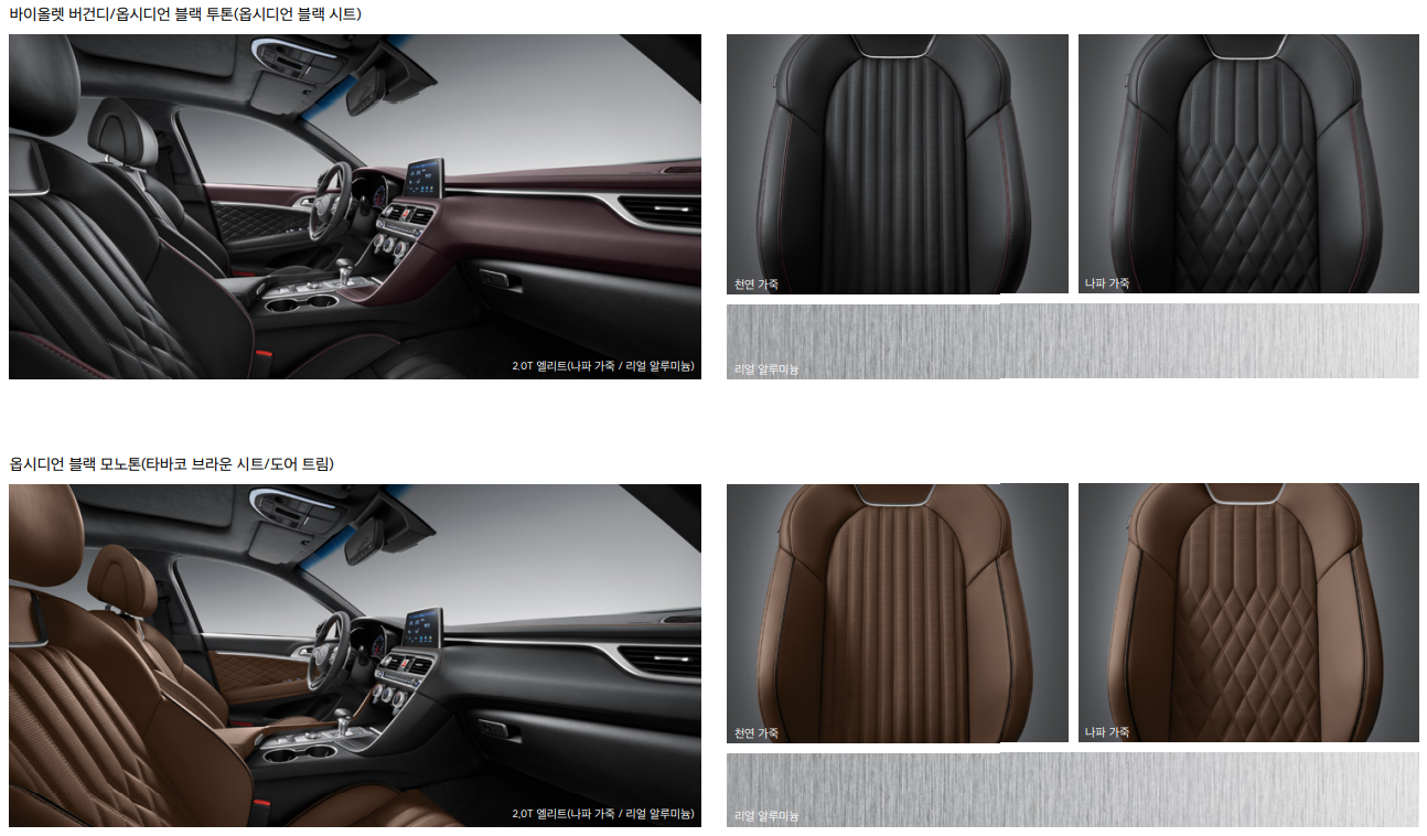 내부 인테리어는 위와 같으며 스포츠 옵시디언 블랙 모노톤은 스포츠 트림에서만 옵션 적용이 가능 합니다. 참고 해주시기 바랍니다.