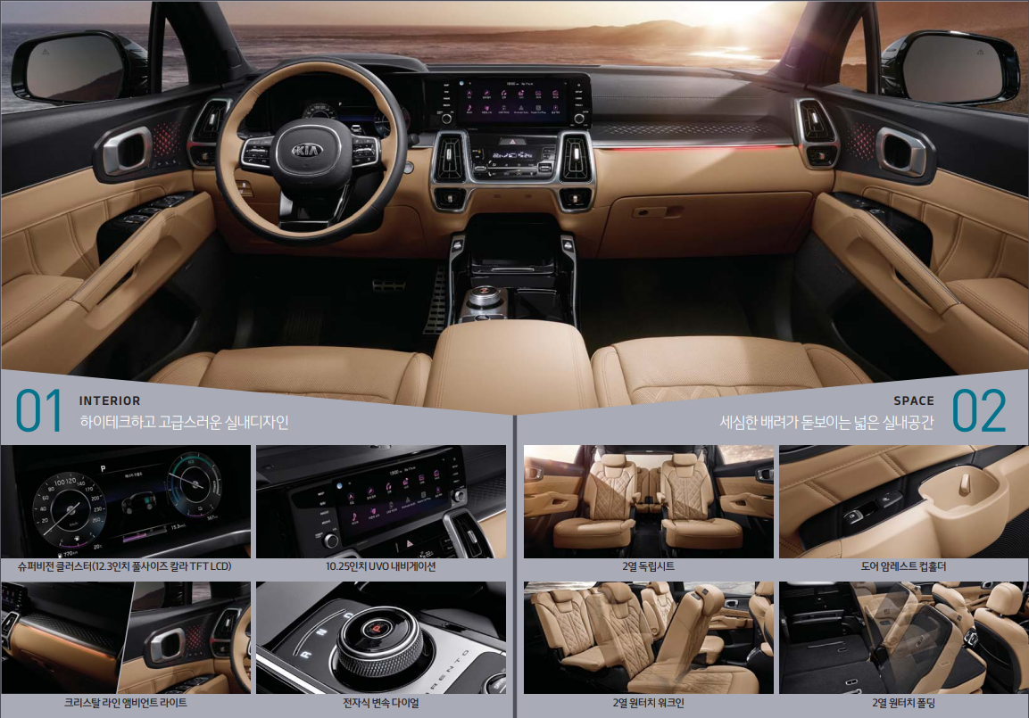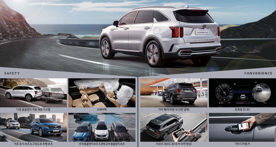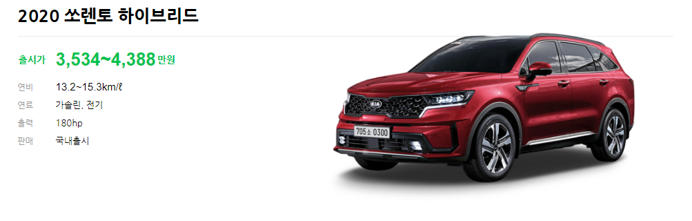 색상 부분에서는 선택권이 없어서 아쉬운 부분이 있습니다. 하지만 하이브리드라는 장점은 버릴 수 없는 매력 입니다. 쏘이번에 출시된 쏘렌토는 이전의 디자인에서 탈파하여 사람들에게 큰 인기를 얻고 있습니다. 위의 정보를 잘 보시고 좋은 차량 구매하시기 바랍니다.