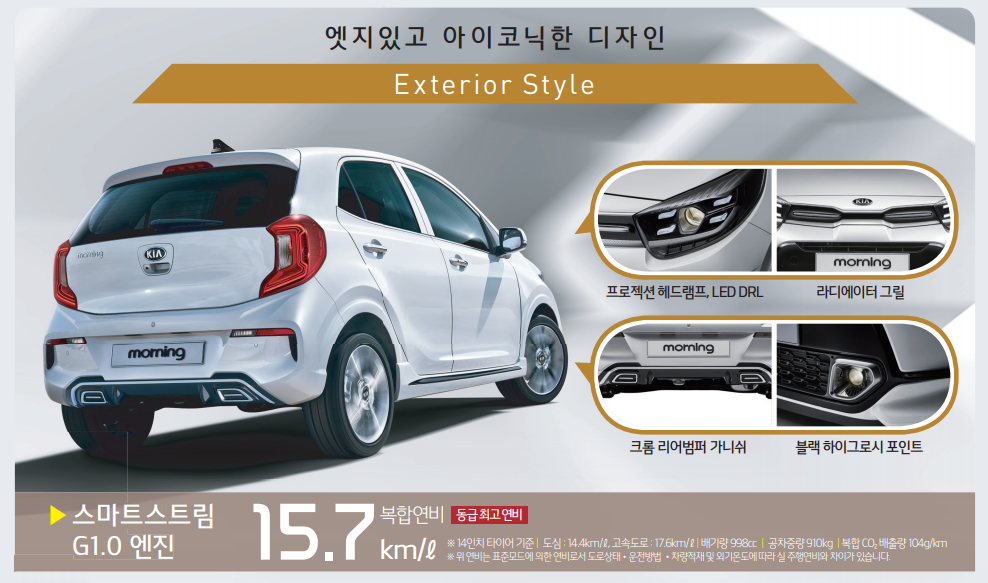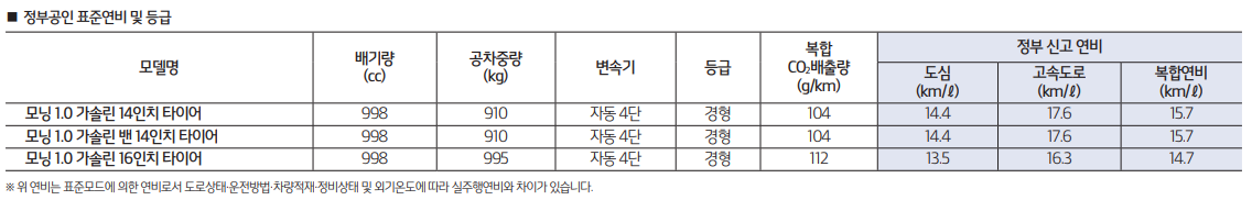 경차 답게 연비가 뛰어납니다. 고속도로에서는 17까지 나오기 때문에 장거리 운행에도 기름값 걱정은 안해도 되겠습니다. 다음은 2021 모닝 어반 인테리어 및 색상에 대해서 알아보도록 하겠습니다.