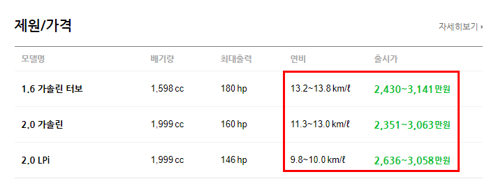 2.0 가솔린과는 큰 가격차이는 없습니다. 프레스티지 2,685만원 노블레스 2,955만원, 시그니처 3,115만원 입니다. 차량의 안전성 및 편의를 가장 많이 생각하시는 분들은 시그니처 트림이 다양한 편의 시설로 가장 적합하다고 생각합니다.