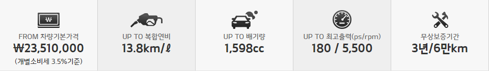 1.6 가솔린 터보 트림은 2.0 가솔린과 트림종류는 동일하며 기능도 거의 비슷합니다. 다만 배기량의 차이가 있는것이 큰 특징입니다.