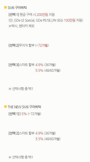마지막으로 르노삼성자동차에서 진행중인 더 뉴 SM6 구매 혜택 정보 입니다.