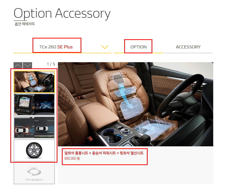 위의 르노삼성자동차 홈페이지에 접속 하시면 각 트림별 스펙상세 바로보기가 가능 합니다. 또한 각 트림별로 옵션 가능 선택 사항이 확인 가능합니다. 하단의 이미지는 옵션 파트 확인 하는 부분 입니다.