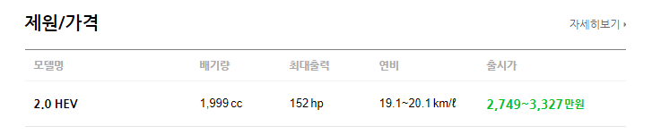 우선 대략적인 출시가 및 연비와 연료방식에 대해서 간단히 알아보도록 하겠습니다.