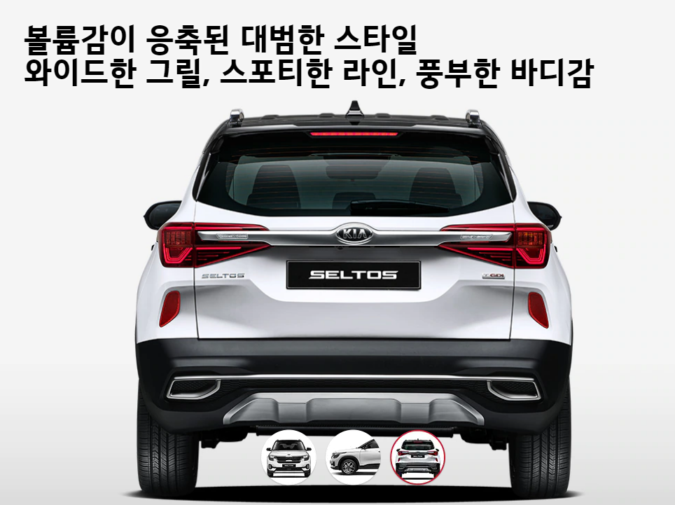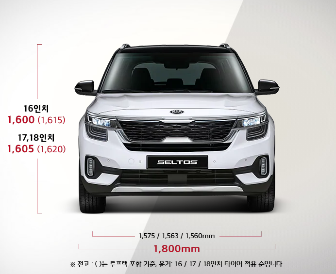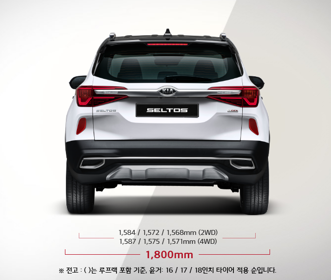 다음은 2021 셀토스 제원에 대해서 알아보겠습니다. 위의 이미지에서 보이듯이 전장은 4,375로 일반 SUV보다 작은 사이즈 임을 알 수 있습니다. 그리고 전폭은 1,800 입니다. 실제 보면 휠씬 크게 보이기 때문에 소형처럼 보이지 않는 것이 특징 입니다.