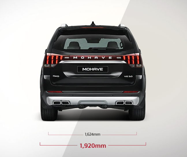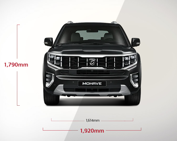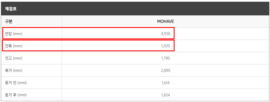 모하비 더 마스터 제원을 알아보도록 하겠습니다. 전장은 4,930mm으로 거의 5,000mm입니다. 굉장히 큰 사이즈로 실물은 더 크게 느껴집니다. 전폭은 1,920mm으로 기본적으로 넓지만 실내 인테리어가 잘 나와 실제로 보면 더 넓어 보인다는 평가 입니다.