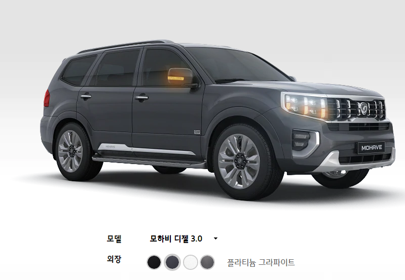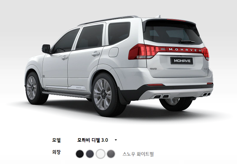 모하비 더 마스터 색상은 위의 총 5가지 입니다. 스노우 화이트 펄 전 트림 7만원 추가금액이 붙습니다. 참고 하시기 바랍니다.