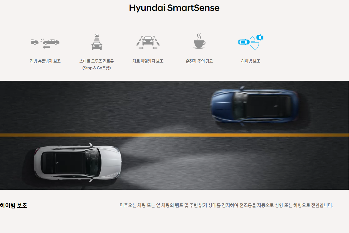 2020 i30 N라인 패키지 선택 폼목 중 현대 스마트 센스 2, 3 패키지를 보면 운전자 안전에 대한 기능입니다. 전방 충돌방지 보조 스마트 크루즈 컨트롤, 차로 이탈방지 보조, 하이빔 보조 등 차량을 안전하고 기능성 있게 사용하데 유용한 옵션이라 추천 드립니다.