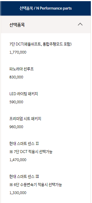 2020 i30 N라인은 트림이 한가지 종류 입니다. 그래서 옵션 사항이외에는 선택 할 사항이 없습니다. 안전관련 기능과 편의 기능이 거의 풀옵션에 가깝습니다. 여기서 추천드리는 선택 옵션은 현대 스마트 센스 2, 3 입니다. 자세한 사항은 하단을 참고 해주시기 바랍니다.