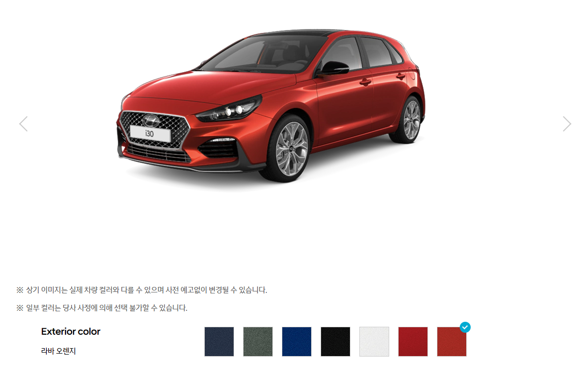 5. 2020 i30 N라인 외부 색상 및 내부 인테리어