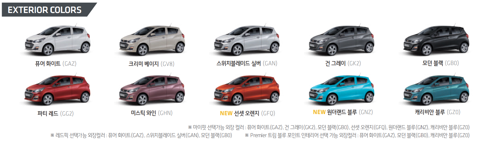 최신 2021 쉐보레 신형 스파크 가격표 연비 제원 색상 프로모션