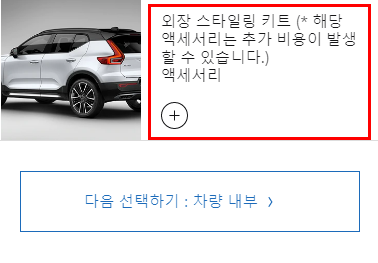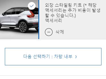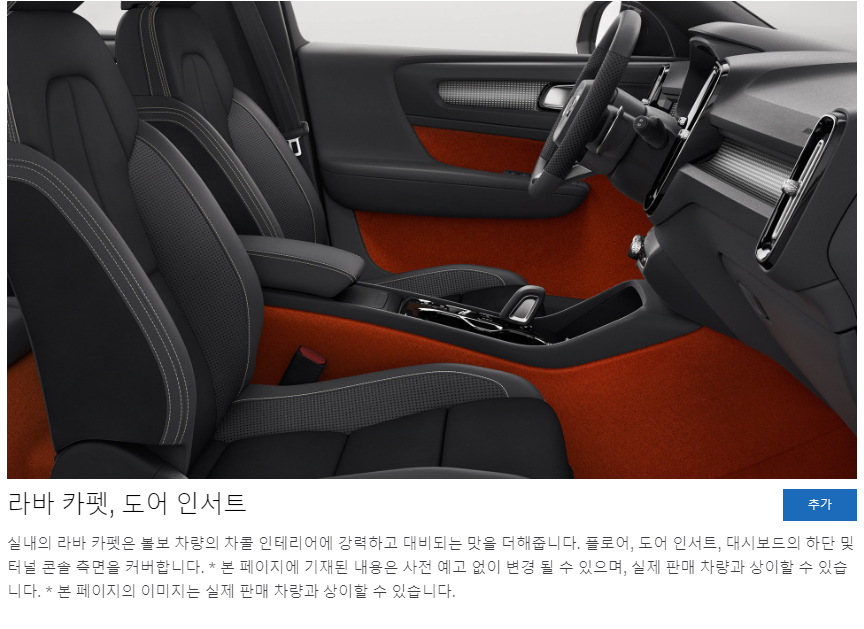 2020 볼보 XC40 외장은 스타일링 키트를 선택 할 경우 추가 비용이 발생할 수 있습니다. 원치 않으시면 빼시고 다음으로 넘어가면 됩니다. 다음은 차량 내부 입니다.
