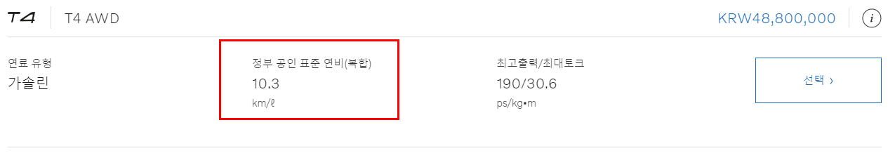 연료는 가솔린 방식이며 배기량은 1,969cc 입니다. 복합연비는 10.3으로 전 트림 공통으로 동일 합니다. 지금까지 2020 볼보 XC40에 대해서 알아보았습니다. 볼보는 튼튼하기로 잘 알려진 차입니다. 안전성을 고려하시는 분들에게 추천 드리는 차종 입니다.