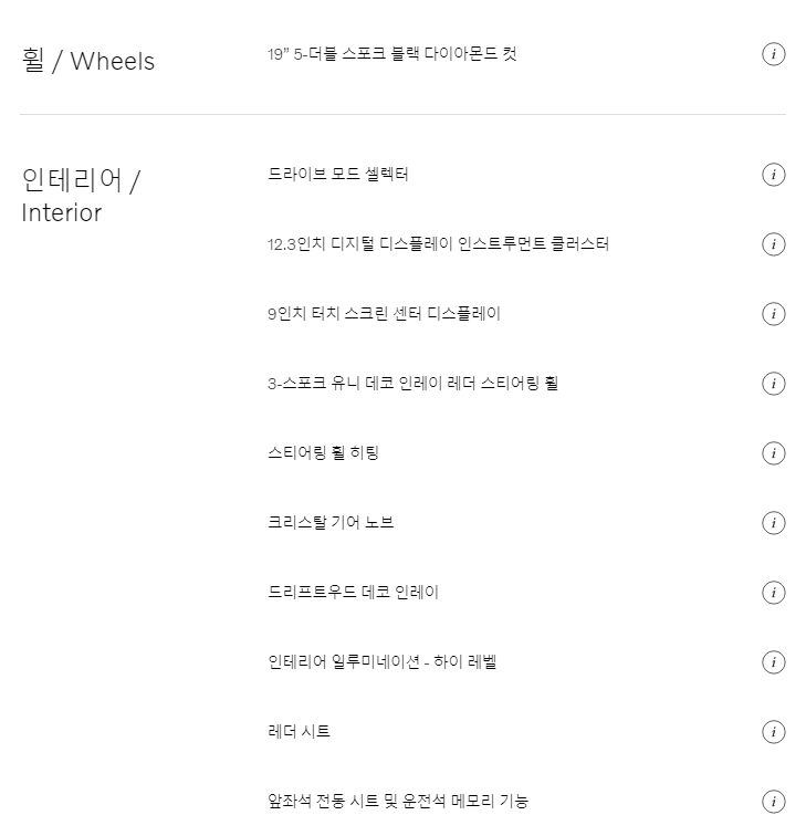 휠은 기본트림과 1인치 차이인 19-5인치 기본옵션으로 선택됩니다.