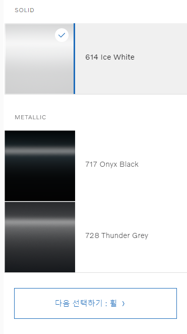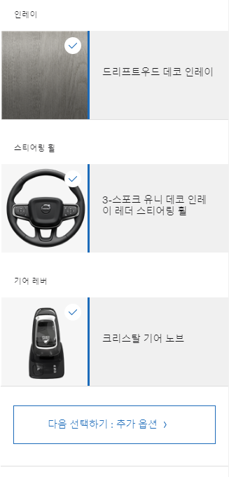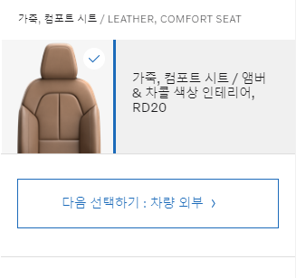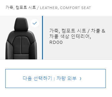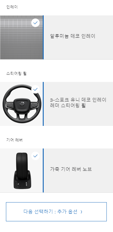 차량내부도 기본옵션으로 고정값입니다. 이제 마지막으로 추가옵션으로 넘어가보도록 하겠습니다. 추가 옵션에는 총 5가지가 있습니다.