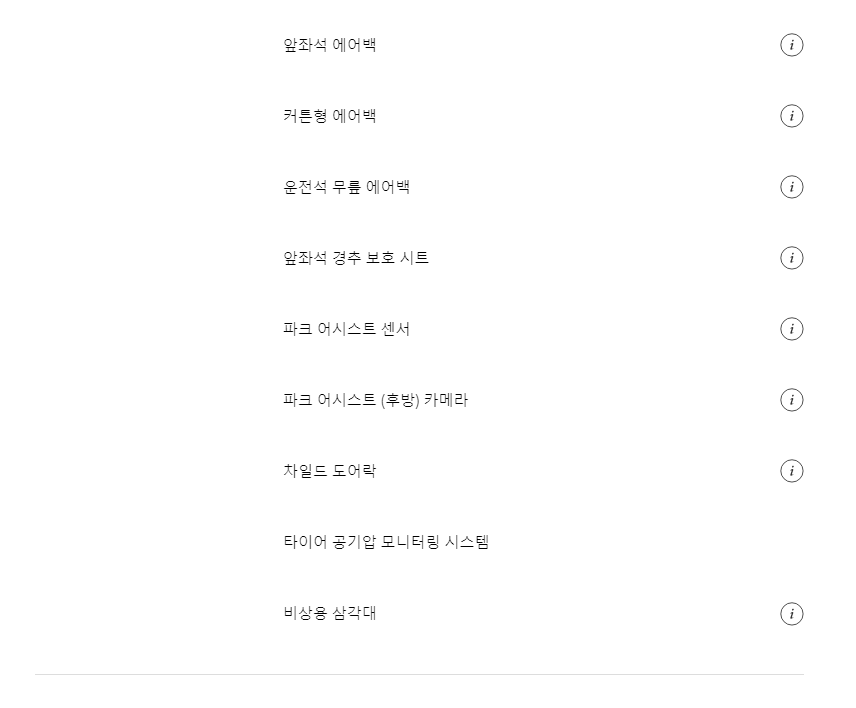 추가옵션은 위의 이전 트림과 동일하니 이전 트림에서 참고하시기 바랍니다.