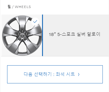 국산차와 달리 외제차는 트림 자체에 옵션이 포함 되어 있어서 선택사항이 많지 않은것이 장점이자 단점 입니다. 휠 역시 18인치 스포크 실버 알로이만 선택이 가능 합니다.