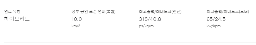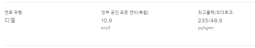연비는 어떤 트림을 선택하는지에 따라 조금씩 차이가 있지만 평균 9.5 정도로 보시면 됩니다. 상세한 정보는 상단의 이미지를 참고해 주시기 바랍니다.