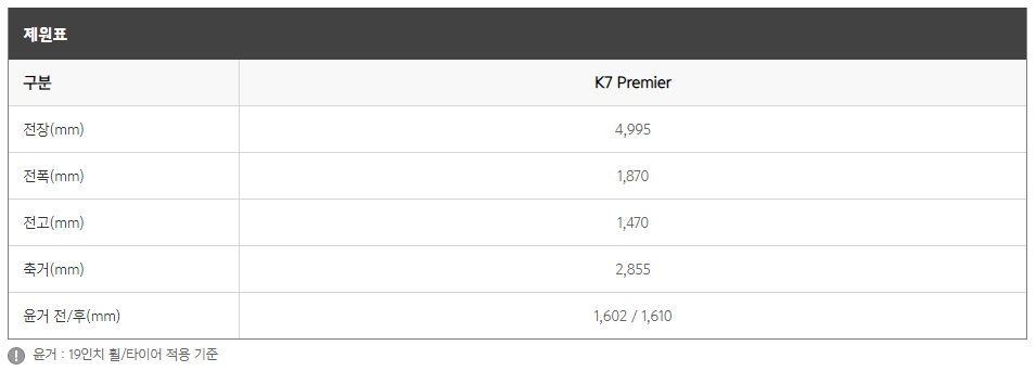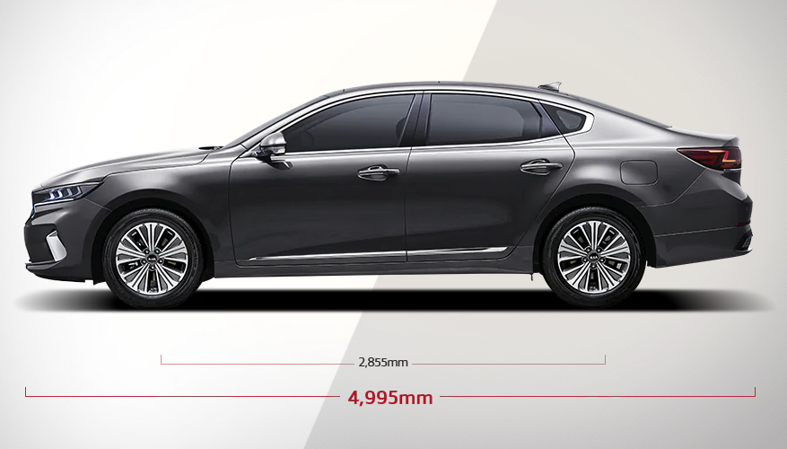 2020 K7 제원은 전장 4,995 전폭 1,870, 전고 1,470 입니다. 전장은 거의 5,000 이라고 보시면 되며, 실내 디자인이 잘나와서 내부가 제원에 비해 더 넓어 보입니다.