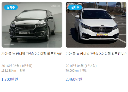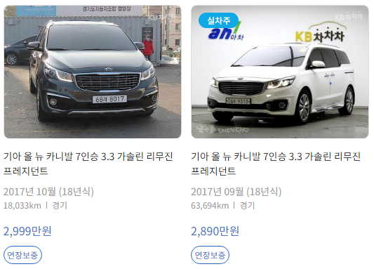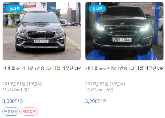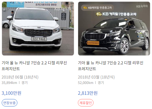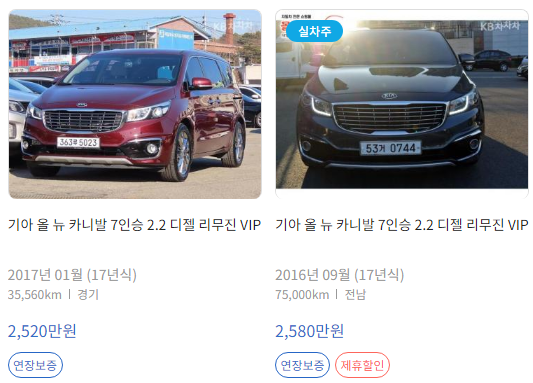 즉, 위의 금액과 차이가 아주 많이나는 중고차는 차량의 문제나 허위 매물을 먼저 의심해보셔야 합니다. 다음은 올 뉴 카니발 2.2 디젤 리무진 VIP 트림 입니다.