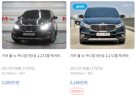 안녕하세요. 자동차 전문 블로그 IWANTTOGETTHIS 입니다. 이번 글에서는 패밀리카로 가장 인기가 많은 카니발 중고차 7인승 9인승 가격 시세 및 시세표 대해서 알아보도록 하겠습니다. 자세한 시세표 내용은 하단을 확인 해주세요.
