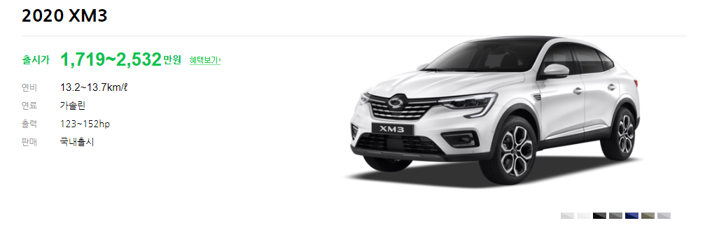 지금까지 2020 XM3 가격표 및 제원 연비 색상 등 다양한 정보를 알아보았습니다. 1,000만원 후반대에 이정도 차를 구매할 수 있는 기회가 많지 않다는 생각이 들며 가성비를 생각하신다면 추천드립니다. 감사합니다.