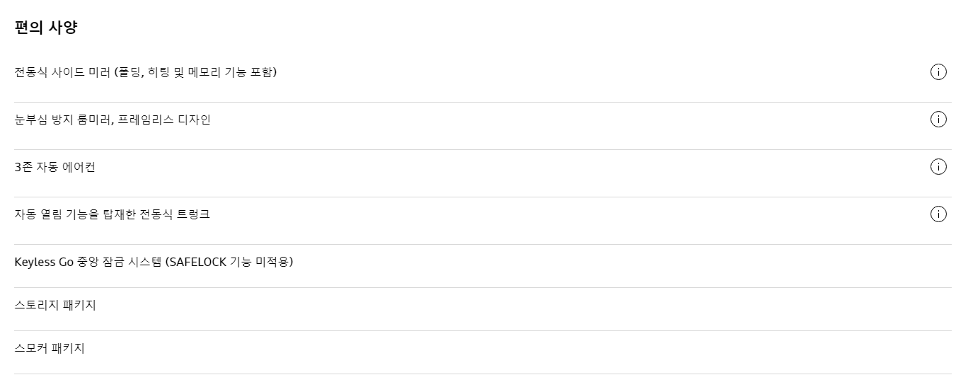 해당 트림의 상세한 세부사항은 상단의 링크를 참고 해주시기 바랍니다.