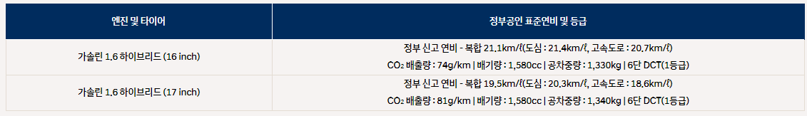 2. 2020 아반떼 하이브리드 공인연비 정보