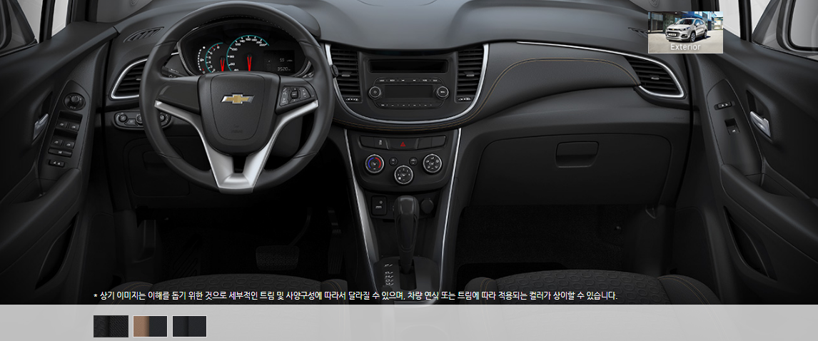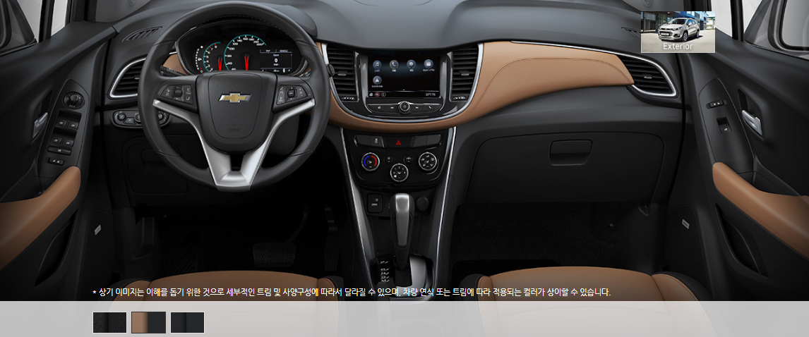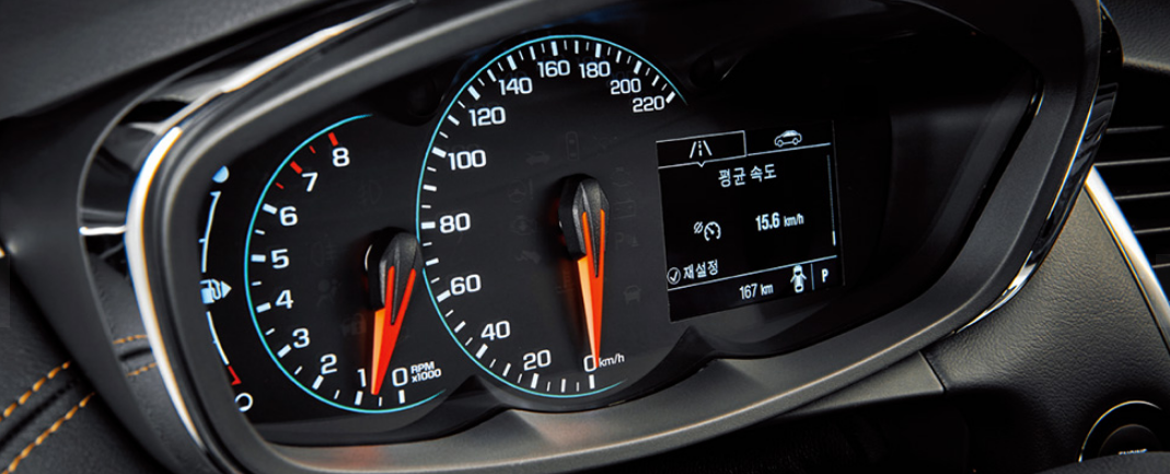 쉐보레 만의 시그니처인 듀얼콕핏 컨셉이라고 알려진 인테리어로 효율과 편의 를 고려한 스마트한 공간 디자인을 토해 수납 공간의 효율성을 높이고 운전자의 편의를 많이 고려했습니다. 또한 은은한 광택의 크롬 장식과 고급스러운 하이글로시 블랙베젤 소재로 더욱 고급스러운 느낌입니다.