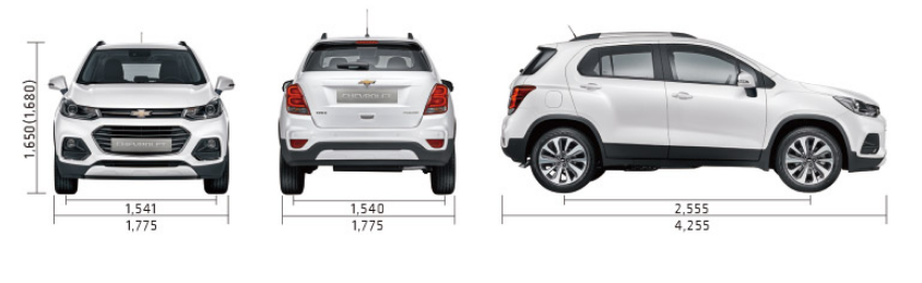 전장은 4,255 전폭 1,775 전고 1,650 입니다. 소형 SUV 지만 실내 내부 인테리어가 잘나와서 굉장히 넓어보입니다. 외부 제원도 굉장히 쉐보레에서 신경 쓴 모델 입니다.