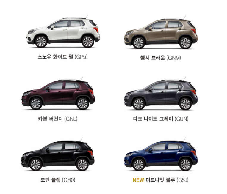 1. 2019 더 뉴 트랙스 외부 색상