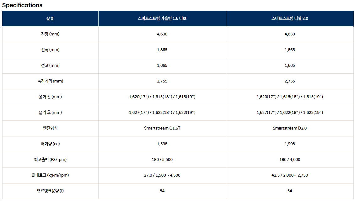 3. 2021 디 올뉴 투싼 하이브리드 제원