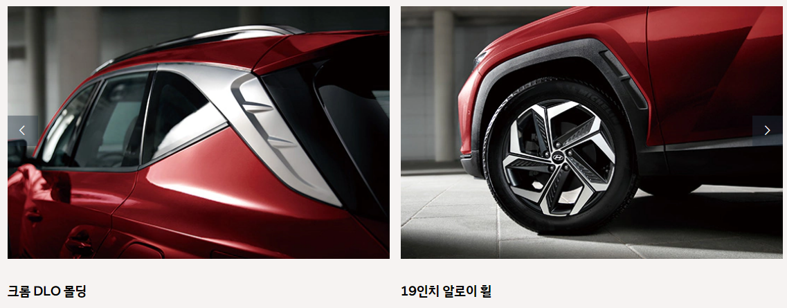 2021 투싼 풀체인지는 전면부 파라메트릭 쥬얼 패턴 뿐만 아니라 크롬 DLO 몰딩과 휠 아치 형상으로 굉장히 강한 투싼만의 이미지를 만들냈다고 생각합니다.
