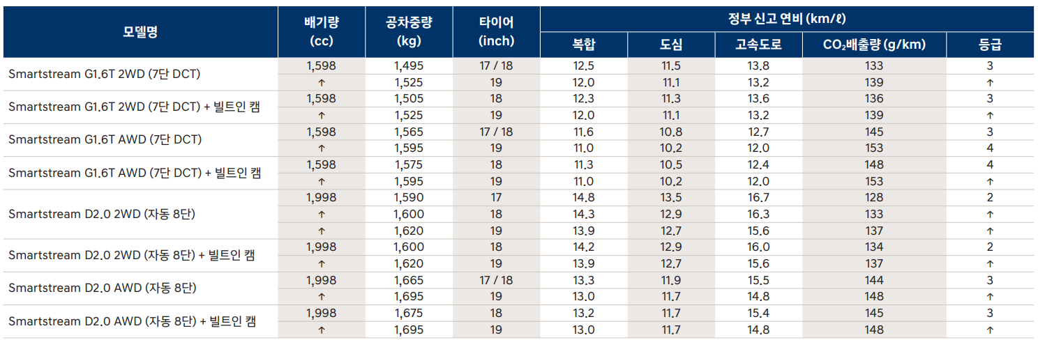 복합연비로 보았을때 트림별로 차이가 있지만 평균적으로 12km/l 나오는 것으로 보입니다. SUV의 보통 연비 수준이라고 할 수 있습니다.