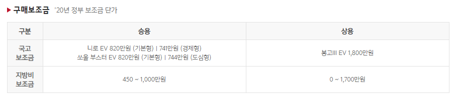 니로 EV는 국고 보조금은 820만원, 지방비 보조금은 450~1,000만원 입니다. 거주 하시는 지자체별로 다르기 때문에 해당 부분은 지차에서 확인 하시기 바랍니다.
