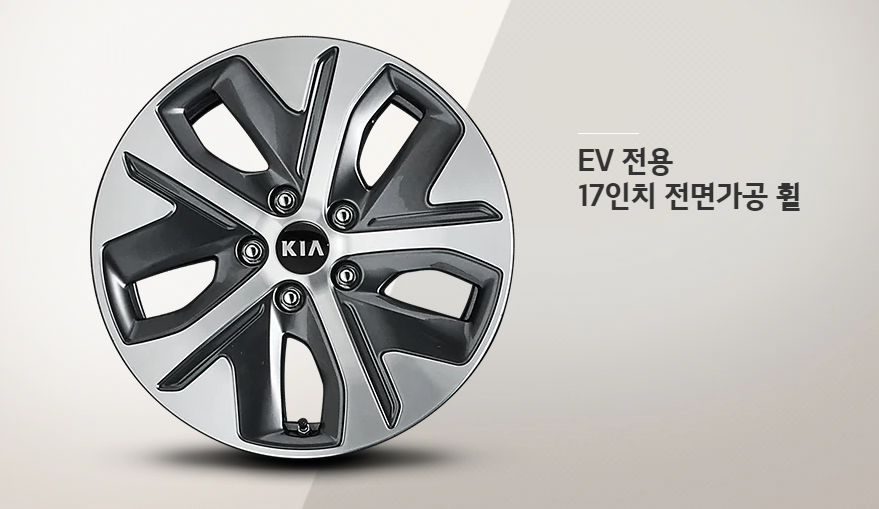 니로 EV는 EV 전용 17인치 전면가공 휠 입니다. 한가지 종류만 선택이 가능한 것이 단점 입니다.